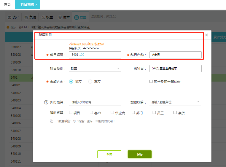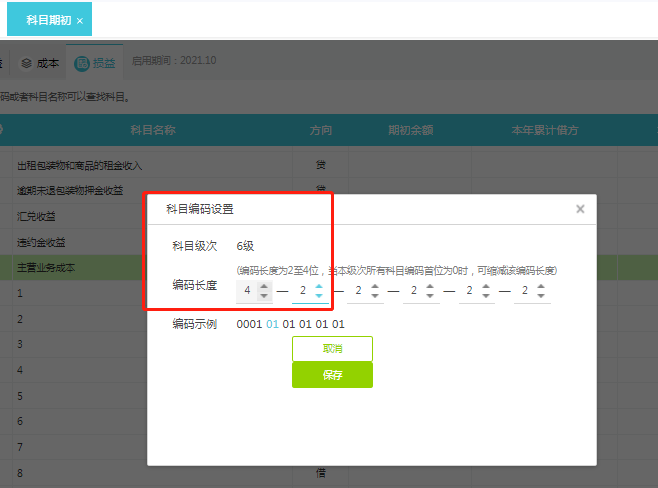 出现此情况,可以修改科目级次来实现。依次点击【设置】-【科目期初】,点击科目编码旁边的【小齿轮】,将编码长度往上新增即可。