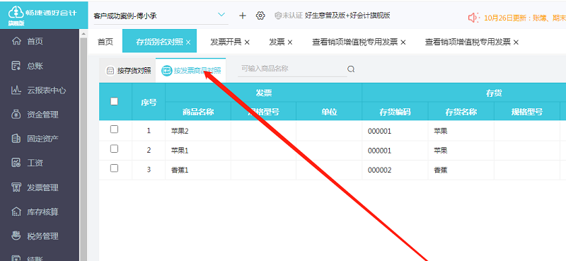 (场景2)发票上商品名称一致,但是存货名称不一致的情况