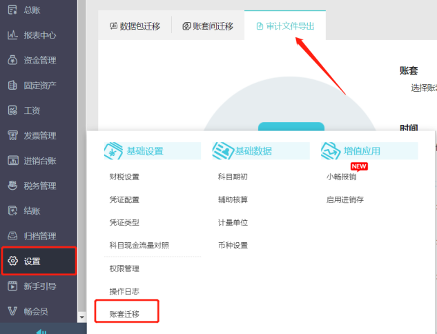 1、点【设置】-【账套迁移】-【审计文件导出】