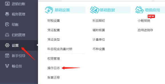 1、用管理员的账号和密码登录,点【设置】-【操作日志】