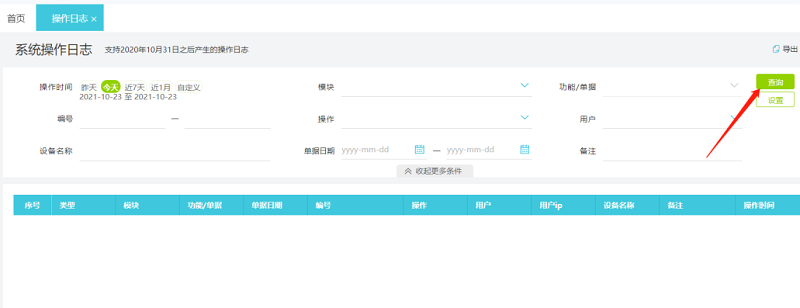 2、打开【操作日志】,可以选择模块和操作、日期进行查询