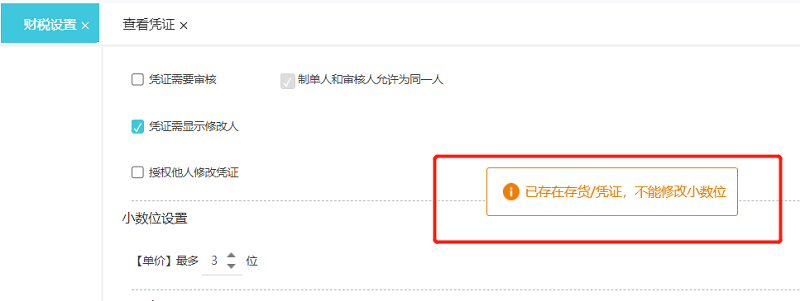经常会出现,修改单价小数位时,显示不能修改,如下图: