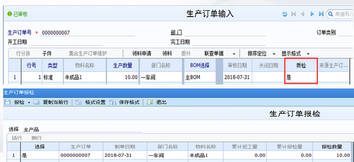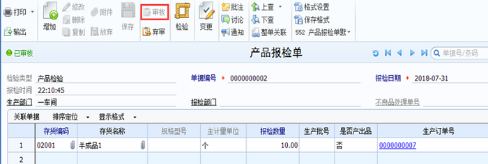 5.库存管理-不合格品记录单,参照产品不良品处理单形成。注意表头部门需要和生产订单部门保持一致