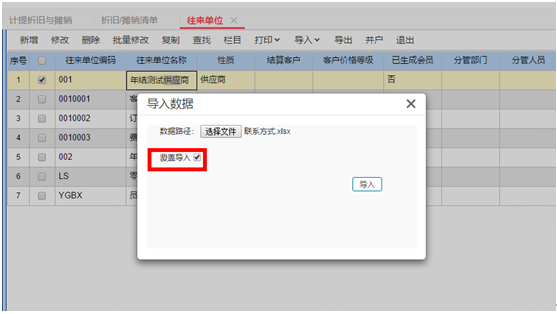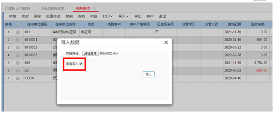 往来单位更新联系方式覆盖导入无效,直接新增了往来单位联系方式记录?