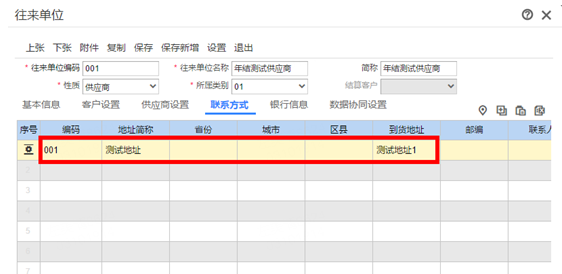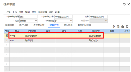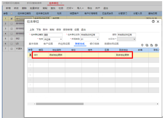 导入成功后再次查看该往来单位的联系方式信息,已更新: