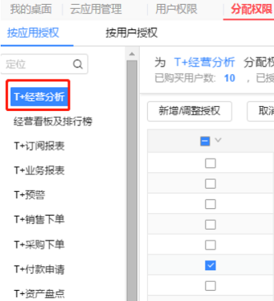 4、随意选择一个移动应用进行授权,比如【经营分析】;