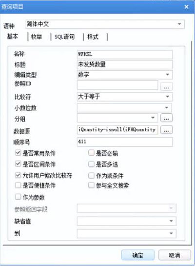 名称:WFHSL;标题:未发货数量;编辑类型:数字;比较符:大于等于;