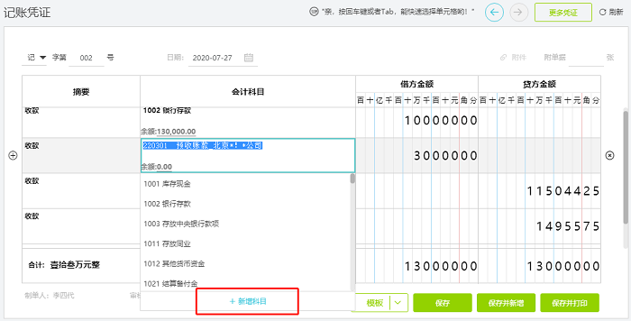 畅捷通好会计财务软件,可以在做凭证的时候直接显示科目余额