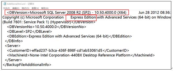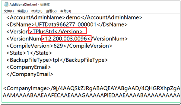 1、将备份的账套进行解压,解压后有两个文件,其中一个是additionalxml 记录了软件版本、补丁号、数据库软件版本信息。
