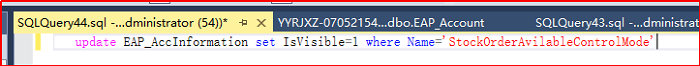 1、把数据备份好,执行语句:update EAP_AccInformation set IsVisible=1 where Name='StockOrderAvilableControlMode'