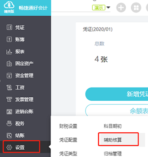 1、进入设置——辅助核算;