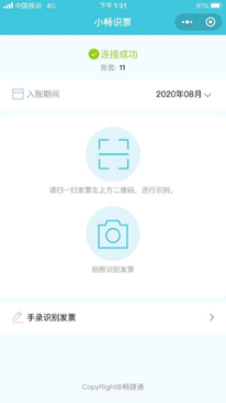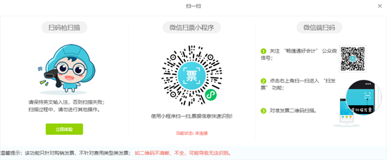 由于【一键导入】涉及使用税控系统里的发票信息,所以我们以扫票小程序为例来说明: