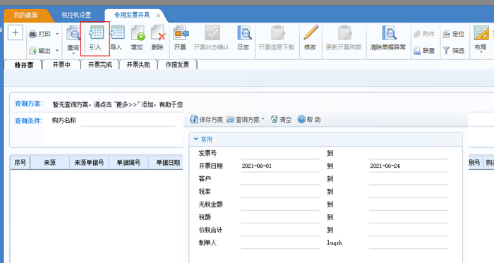 从发票列表模块的发票列表中点击 引入 按钮,才能实现拆分。其它方式都不行。