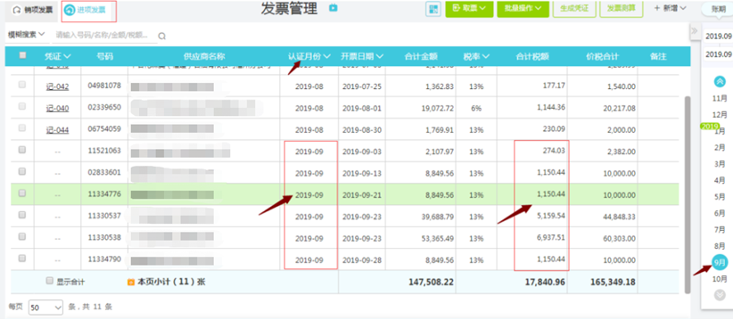 ③增值税申报表中“进项税额”=发票管理中进项发票“合计税额”的合计数(注意是取认证月份是当月的)。