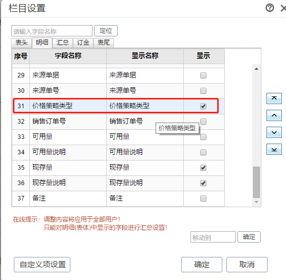 1. 点击采购订单的设置-单据设置,明细中找到价格策略类型字段勾选显示