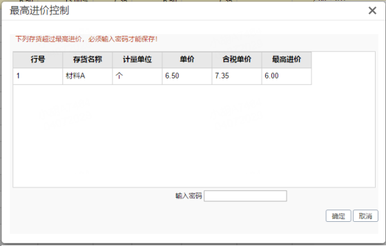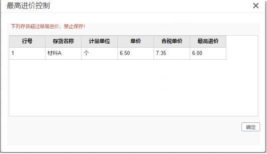 2.当供应商价格本信息与单据中的供应商信息不匹配时,根据存货价格本中的【最高进价】控制;