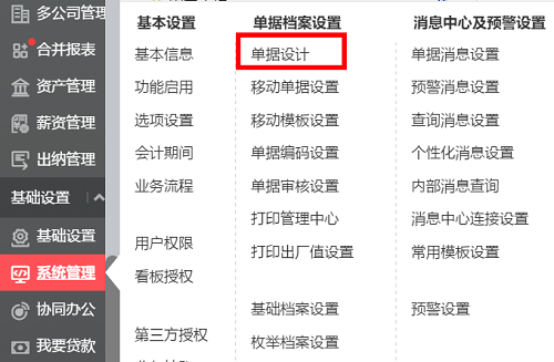 1、在【系统管理】-【单据档案设置】打开【单据设计】