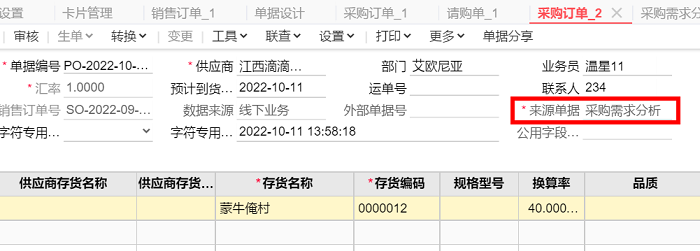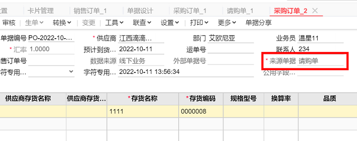 如果是从其他单据生成过来,可以正常保存采购订单。