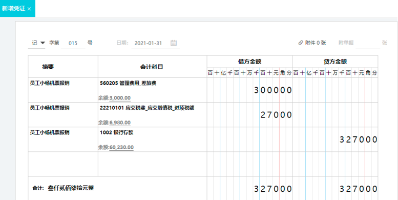 春节来临,服宝公司管理部门员工小畅出差到北京和客户洽谈下一年的合作,出差回来后按规定填写了报销单并附上了3270元的航空客票行程单给财务人员进行报销,未提前向公司预借差旅费;销售部门员工小捷出差到上海和客户洽谈销售业务,出差回来后按规定填写了报销单并附上了1090元的高铁票及2120元的酒店住宿费专用发票给财务人员进行报销,已提前向公司预借了5000元差旅费。