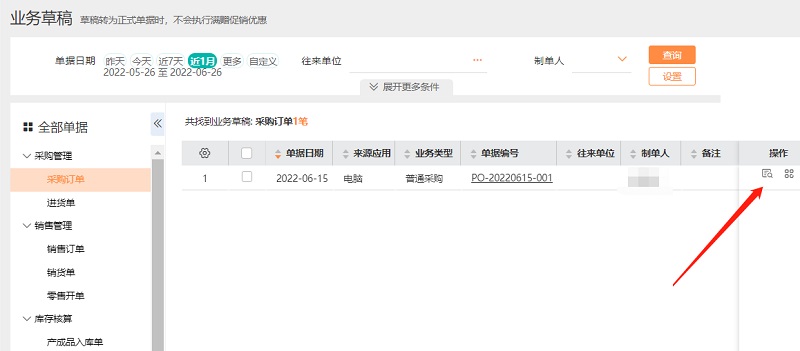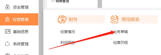 2、或者点击【经营管理】-【业务草稿】界面进行调出单据