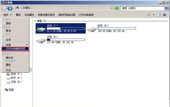 (1)打开“计算机”—“组织”—“文件夹和搜索选项”