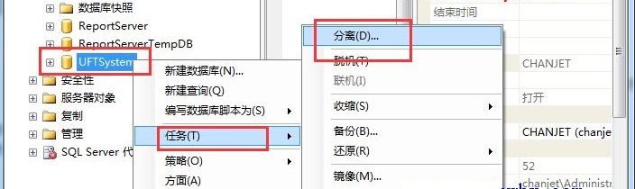 5、电脑里安装过之前的版本,导致在数据库中存在UFTSYSTEM库,无法创建新的UFTSYSTE库也会报这个错,去数据库的企业管理器里把UFTSYSTEM库分离掉,再进畅捷通T+12.0软件的数据库配置界面重新配置一下就好了。