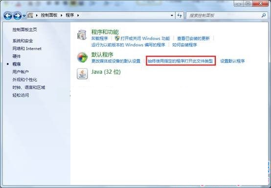 (1)打开“控制面板”-“程序”-“始终使用指定的程序打开此文件类型”: