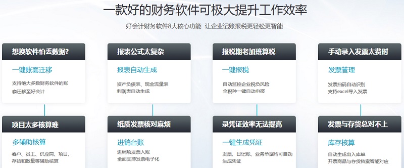 此时此刻一款好的财务软件就能够极大提升财务人员的工作效率,用友好会计财务软件具备8大核心功能,让企业记账报税更轻松更智能。