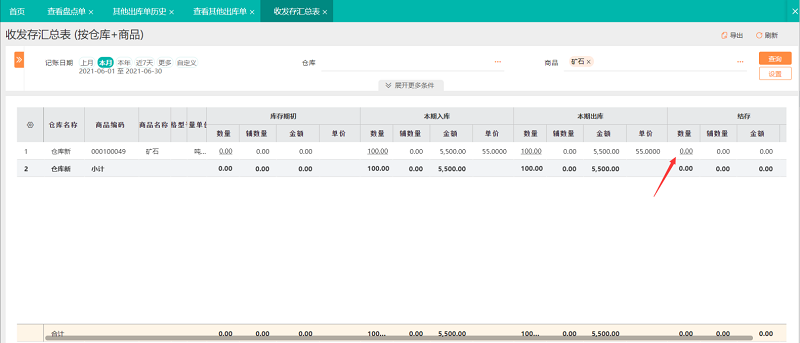 月末盘点库存,如何处理损耗,调整矿产品库存?
