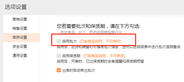 点击【好生意】-【系统管理】-【选项设置】-【库存设置】,勾选【启用批次】