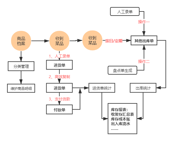 (一)每天接收菜品入库,当天全部发给餐厅厨房,当天就需要减少库存;