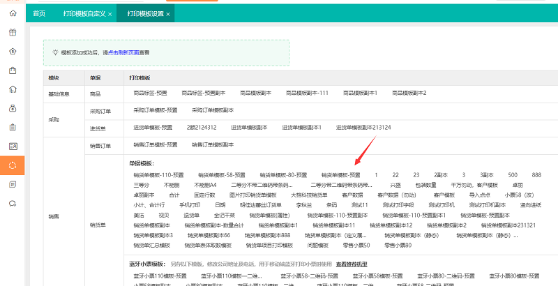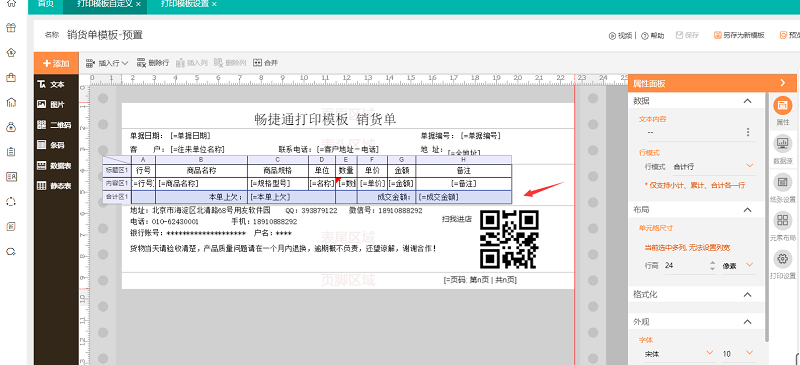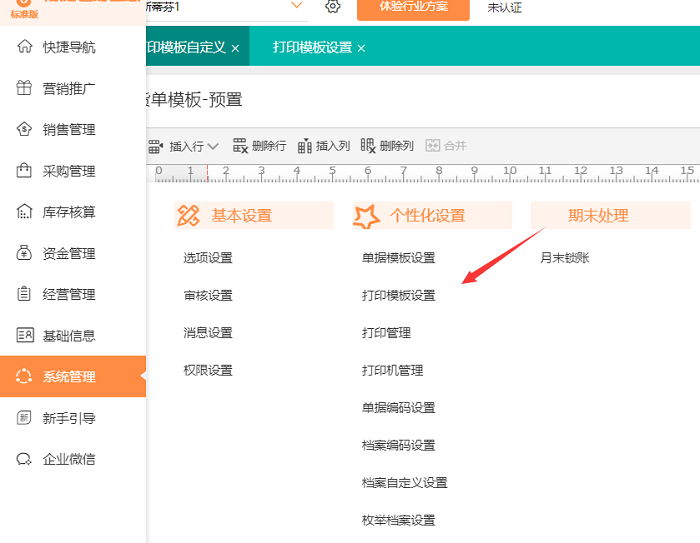 1、 依次点击【系统管理】-【打印模板设置】,选择相应的模板进入设置界面,如图所示: