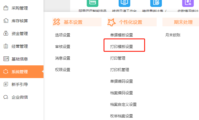 1、点击【系统管理】-【打印模板设置】,选择对应的模板进去;