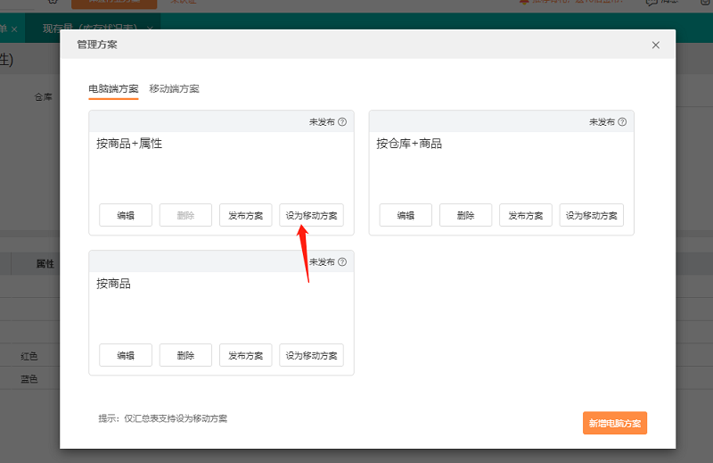 手机端系统预制的是按商品查询现存量,若需要按商品属性的维度查询现存量,需要在电脑端的现存量(库存状况表)中设置一个移动端方案,同时将该方案发布至移动端后,在手机端登录即可在手机端按商品属性查看商品的现存量。