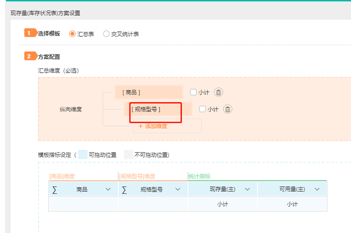 1、进入电脑端,点击【库存核算】-【现存量(库存状况表)】,点击左侧查询档案的【+】新增查询方案,选择规格型号维护(其他维度需要的自己选择)