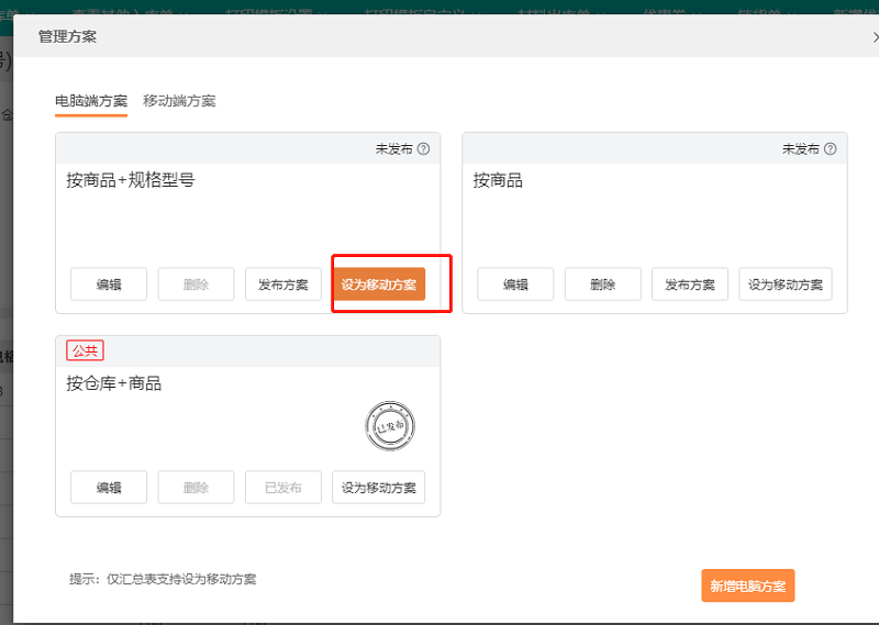 2、保存设置好的查询方案,点击左侧的小齿轮,找到该方案,点击【设为移动方案】