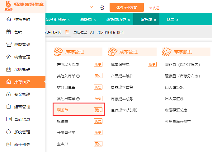 1. PC端入口-》点击库存核算选择调拨单,如果因调拨距离较远或者其他原因导致调拨价格不一致,可以选择异价调拨。