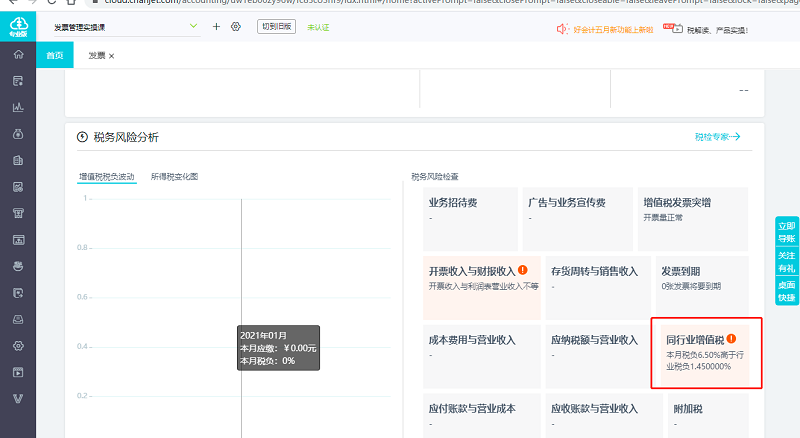 首页上“同行业增值税”源头为当期发票,跟凭证无关(这与税负波动表取数逻辑不一样,其源头为总账凭证)。