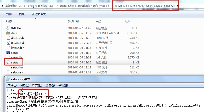 (2)在计算机C盘找到InstallShield Installation Information中将文件夹中的setup.ini文件内容是否包含T3,如有包含则将其整个文件夹删除。