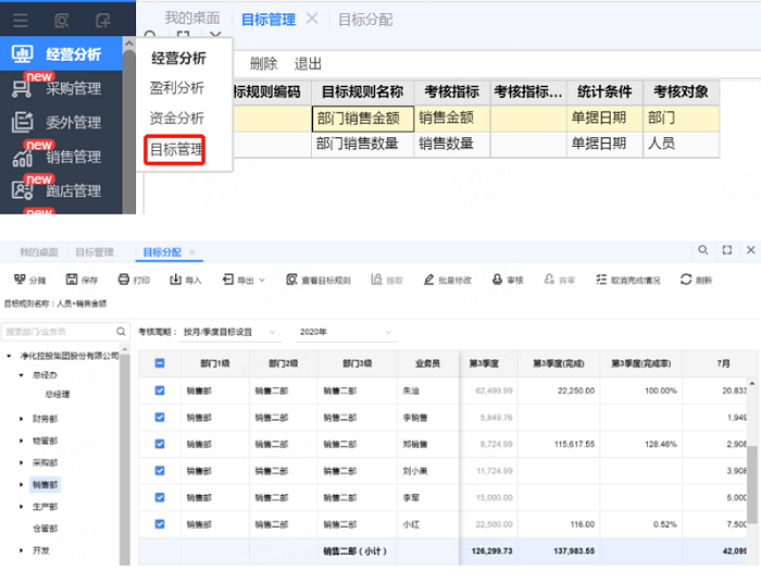 以目标驱动业务员业务执行,将销售的指标分解到部门、个人,指标可以继续分解到品牌、分类、商品、客户,同时可以按照时间维度分解。对目标进行层层分解,落实到被考核单位和个人,让目标管理实施由数据驱动,客观反映部门及员工绩效的实际水平。