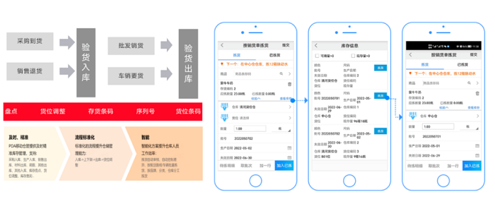 移动PDA设备直接选择单据入库及出库,扫码拣货验货,系统自动辨认商品的正确性,并有错误提示和拣货结果实时统计提交后自动生成入库/出库单,库存实时准确。