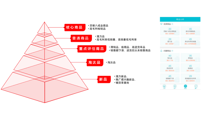以数据洞察业务状况、优化绩效模式。全方位、多维度客户经营分析,助力营收高增长;结合“商品结构模型”T+智慧营销移动端展示每层的运营指标数据,优化商品结构。