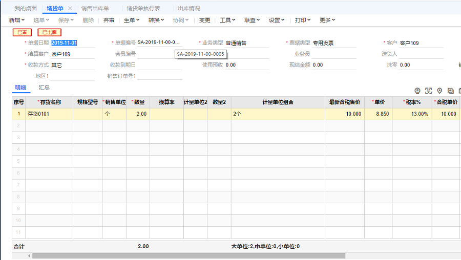 STEP1:首先,我们做3张不同单据日期的销货单,分别出库,出库日期设置为不同的时间。