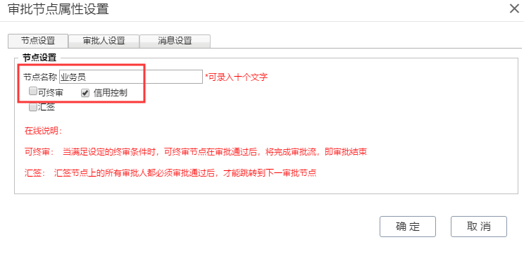 注意:在增加审批节点的时候,一定要勾选 “信用控制”