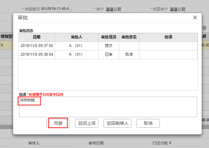 (8)当客户“星星公司”信用余额不足时,业务员审单后,会继续再流转到上级领导处审批;