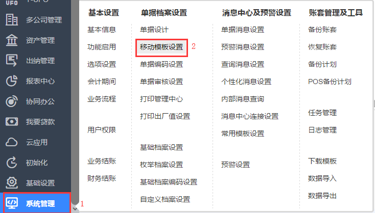 STEP1.用系统管理员登录产品,系统管理-移动模板设置,如下图所示: