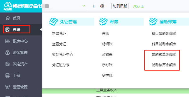 ③各门店收支可通过查询辅助余额表/辅助明细账获取详细资料。依次点击【总账】-【辅助核算明细账】/【辅助核算明细表】。选择需要查询的门店/科目,数据一目了然。
