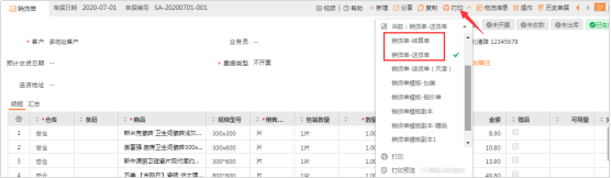 业务人员正常开单,比如在门店用电脑开单,在客户那边手机开单。开完单后选择仓库的打印机及送货单模板打印,能解决仓库看不清字,没型号,送货地址等问题,同时仓库还不用重新手写送货单据。