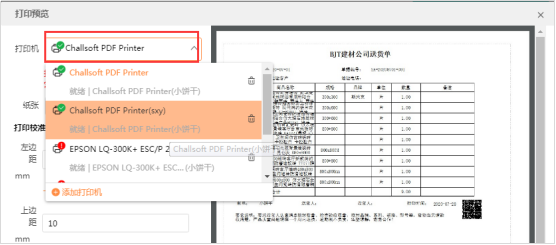 ②当选择送货单模板后,点击打印预览,勾选仓库的打印机。
