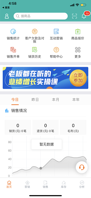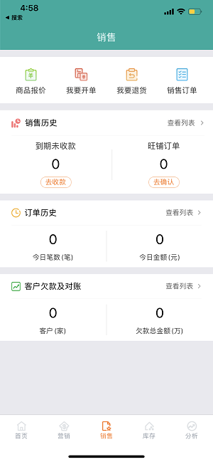 3、随时随地手机查库存、开单、成本、价格,了解经营流水,快速开单不怕超卖、错卖。